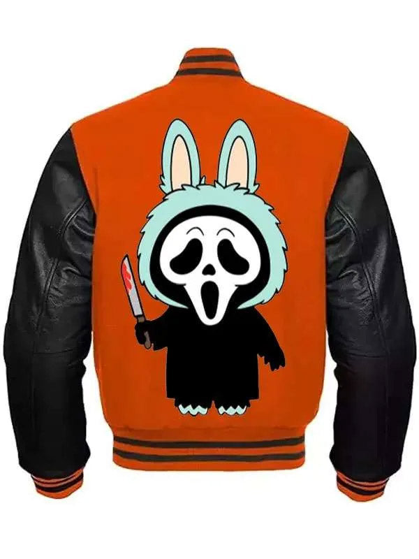 Turn heads with the Labubu Ghostface Varsity Jacket in striking orange and black. Crafted with a perfect mix of streetwear edge and premium comfort, this jacket blends bold style with wearable warmth. Its eye-catching Ghostface graphic and varsity letter details make it a standout piece for casual outfits, cosplay events, or collectors who love unique fashion drops. Whether you’re layering it over a hoodie for winter or rocking it solo in autumn, this jacket is built to keep you stylish and snug.
